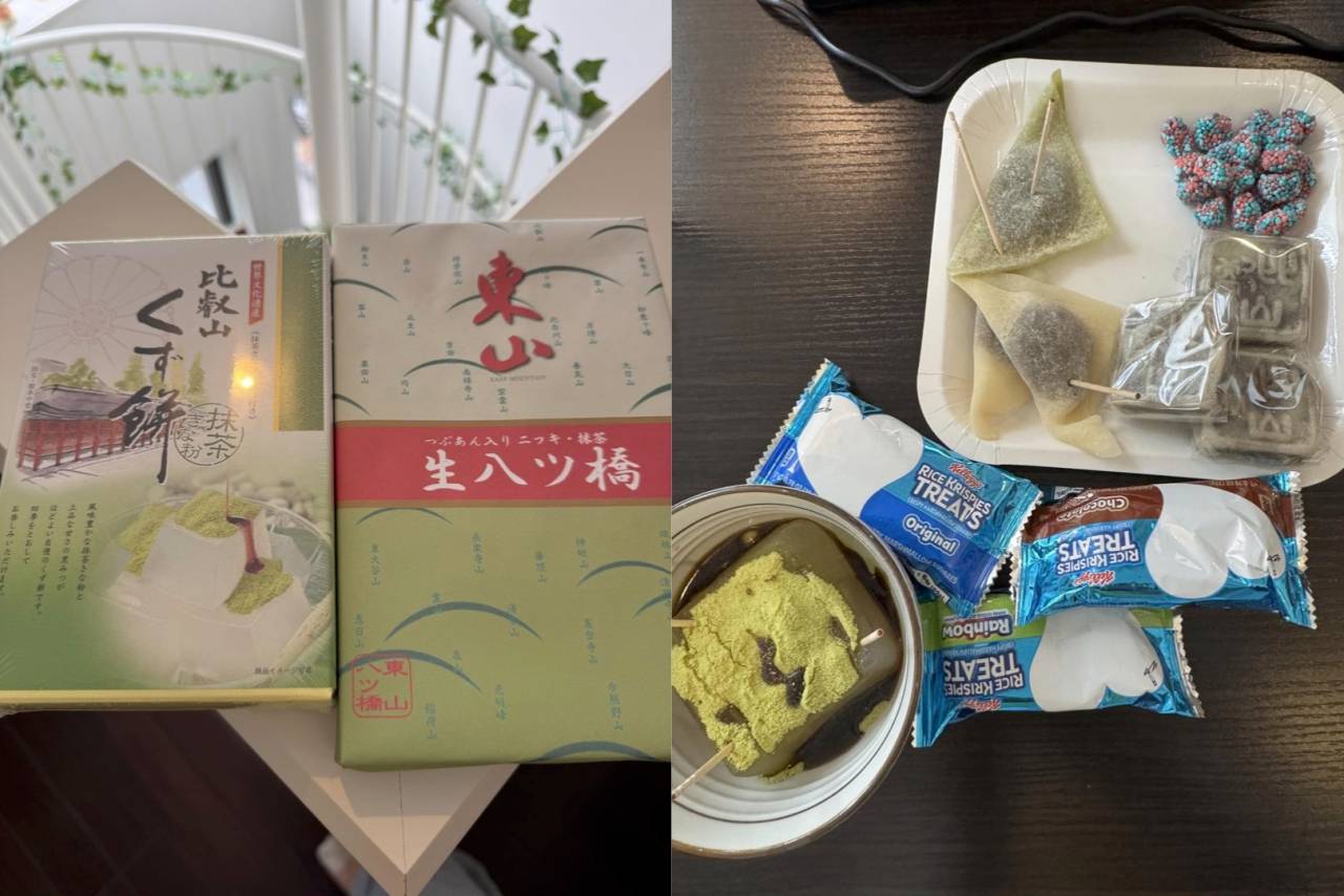 テーブルには、京都のお土産・八ツ橋や葛餅、アメリカのお土産・グミやライスクリスピー などなど、バラエティ豊かなラインナップが並びました✨