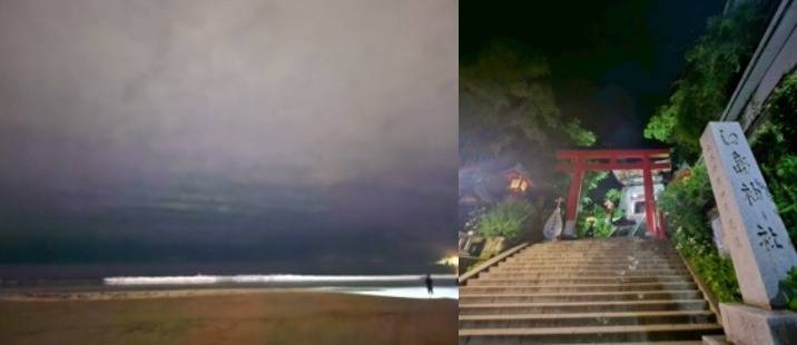 夜、鎌倉駅にそれぞれ集合し、海沿いを歩きながら江ノ島を一周→鎌倉山へ