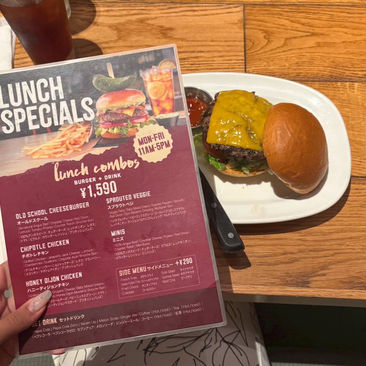 好きなトッピングやソースを選んで、オリジナルバーガーをオーダー♪さらにランチメニューの定番ハンバーガーとサイドにはビーフチリも注文して、ボリューム満点のランチになりました!お肉はジューシーで食べ応え抜群!お腹も心も大満足でした😊