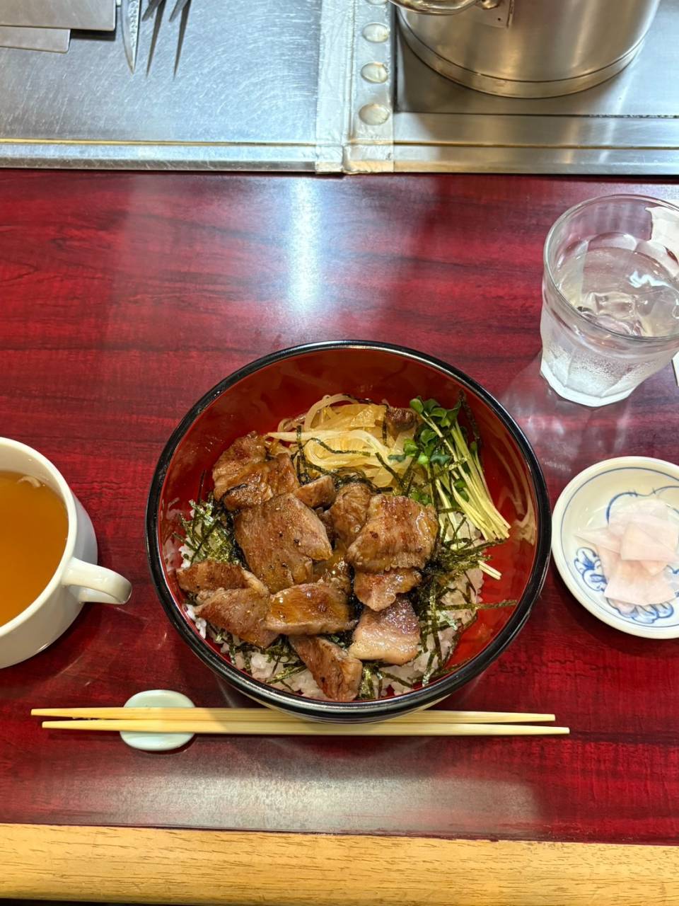 社長お気に入りのこのお店では、ハンバーグ、オムライス、サーモンバターなど色々な種類の鉄板料理がいただけるのですが、お気に入りはこのステーキ丼!!
